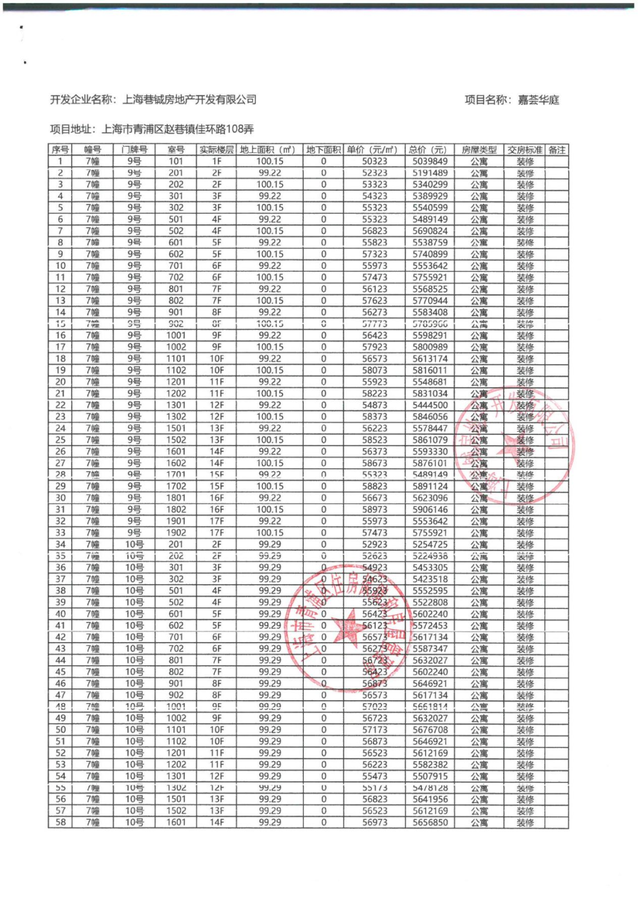 如今,华发虹桥四季收官楼栋7#火热认购中,总价约450万起,预约抓紧!最新一房一价表如下: